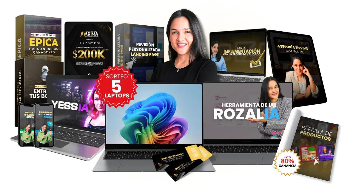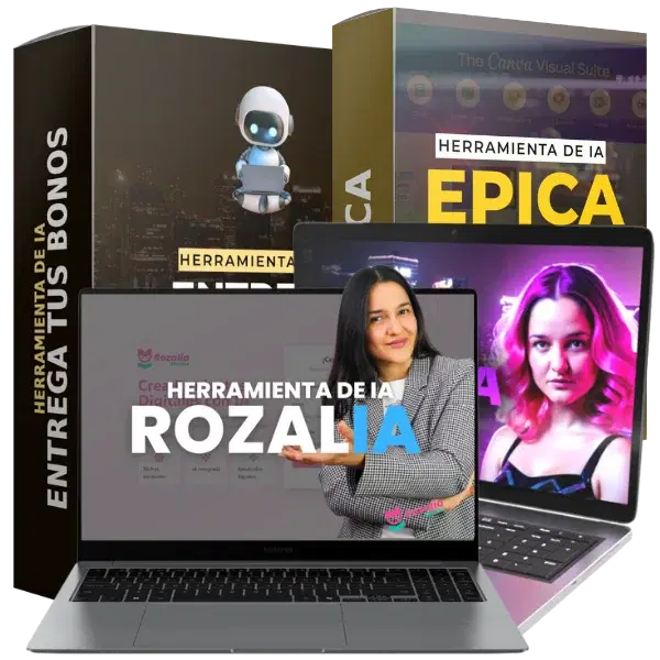 Tendrás acceso a Yess.IA, con respuestas 24/7, RozalIA, para crear tus productos en solo 12 clics, Épica, para crear anuncios en imagen ganadoras y l “Entrega tus Bonos” para que puedas acelerar tus procesos de venta.